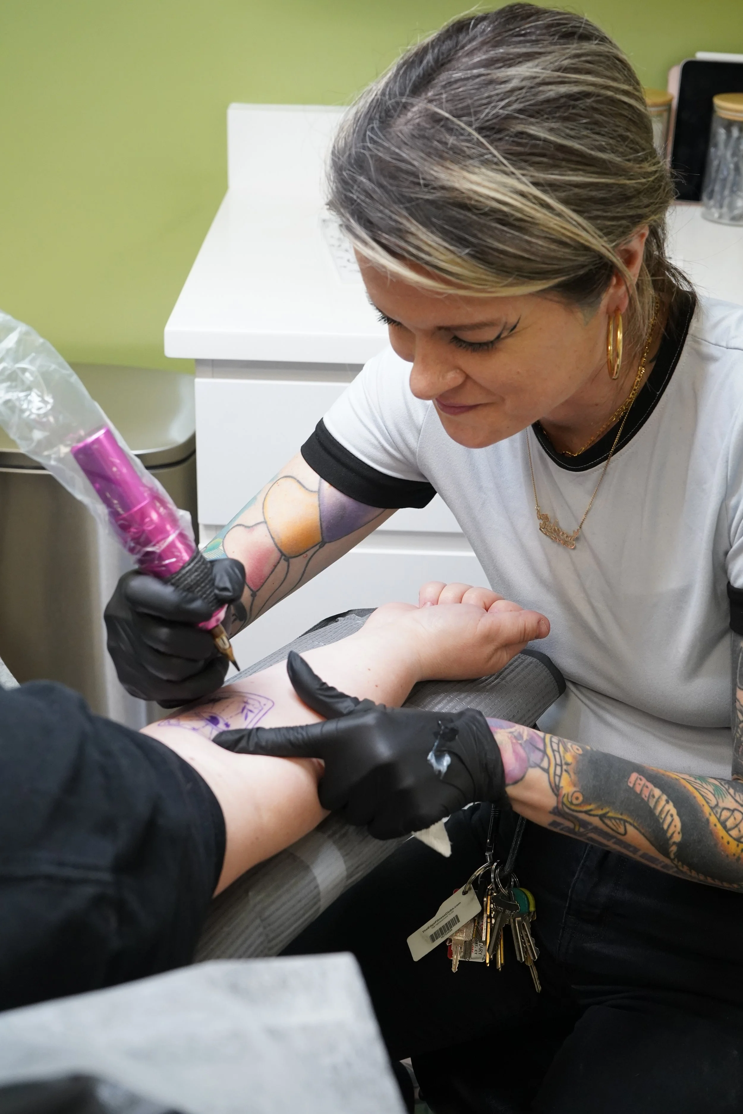 Kim has been tattooing for over 3 years and specializes in fine line tattoos with whip shading, creating delicate and detailed designs. While this is her favorite style, she is versatile and skilled in a variety of tattoo techniques to bring clients’ ideas to life.